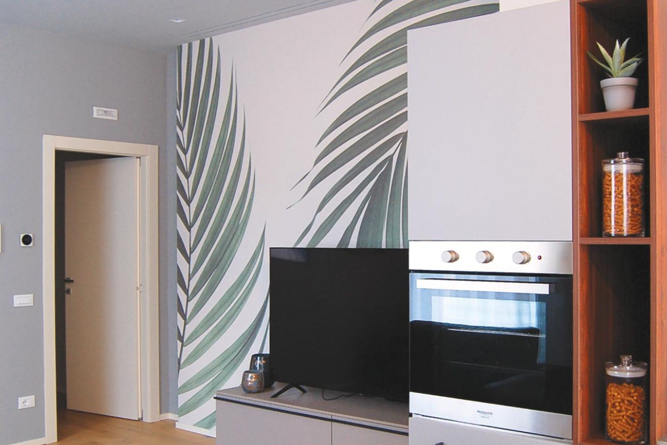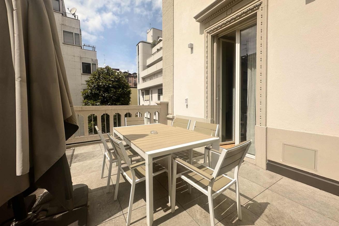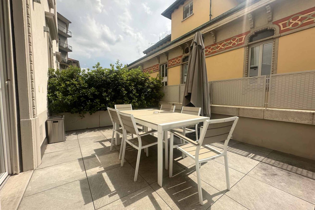 Trilocale situato al piano primo con grande terrazza attrezzata, accessibile dalla zona giorno. Arredato in modo completo e ricercato, con utilizzo di materiali pregiati, quali; parquet in rovere, ceramiche Marazzi, velluti, carte da parati, rivestimenti in legno e coordinati tessuto. Cucina completamente attrezzata e biancheria da letto/bagno. L'appartamento dispone di una lavanderia a scomparsa