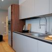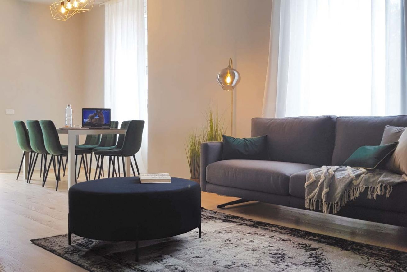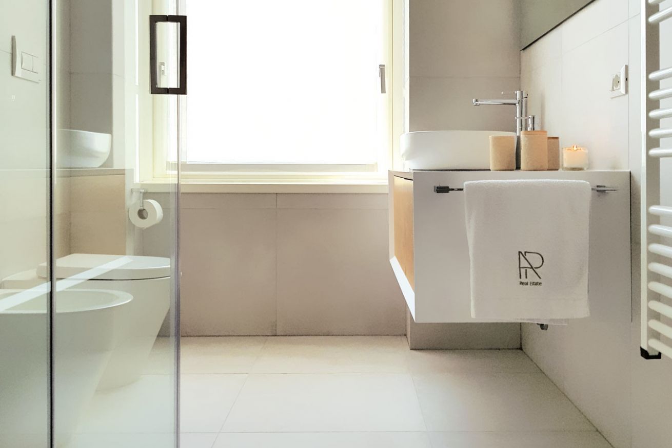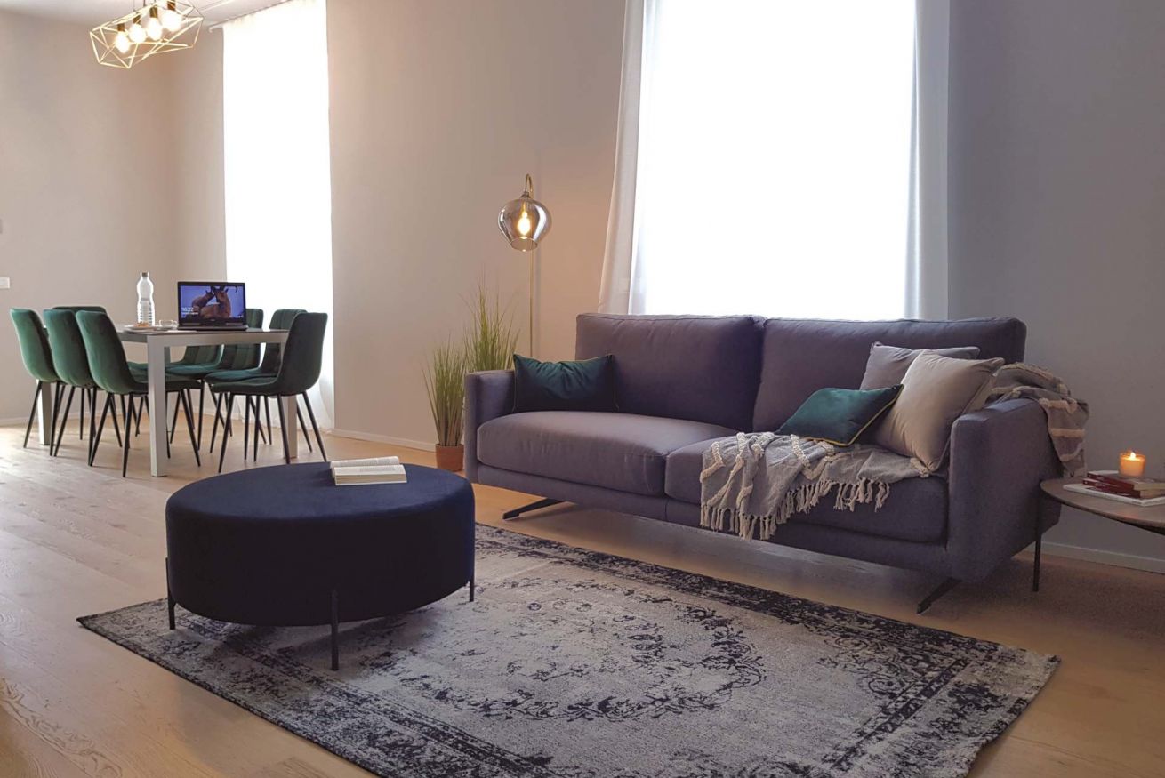 Trilocale situato al piano primo con grande terrazza attrezzata, accessibile dalla zona giorno. Arredato in modo completo e ricercato, con utilizzo di materiali pregiati, quali; parquet in rovere, ceramiche Marazzi, velluti, carte da parati, rivestimenti in legno e coordinati tessuto. Cucina completamente attrezzata e biancheria da letto/bagno. L'appartamento dispone di una lavanderia a scomparsa